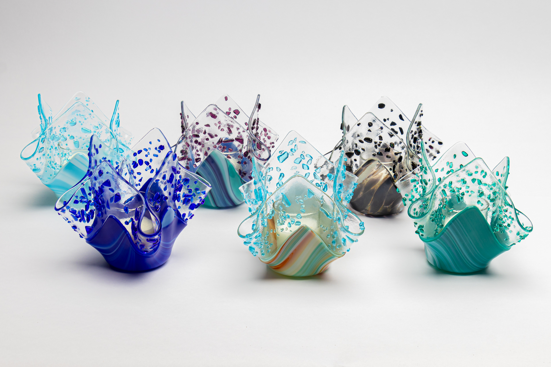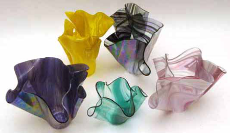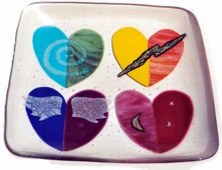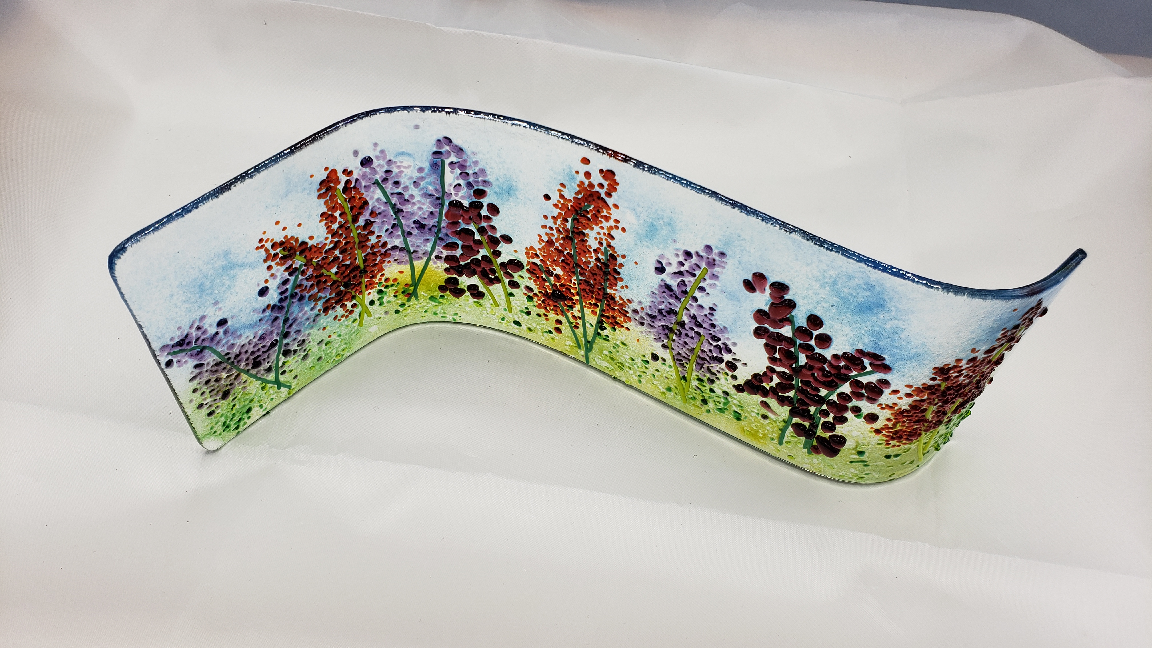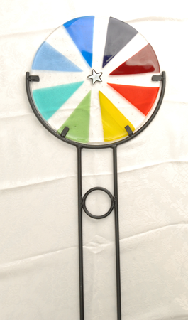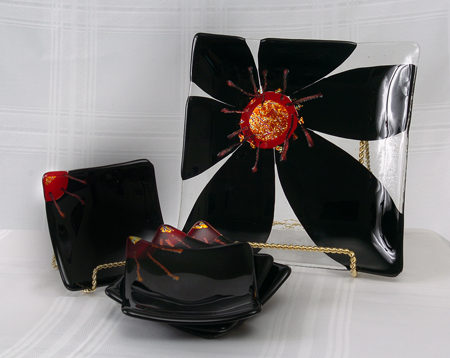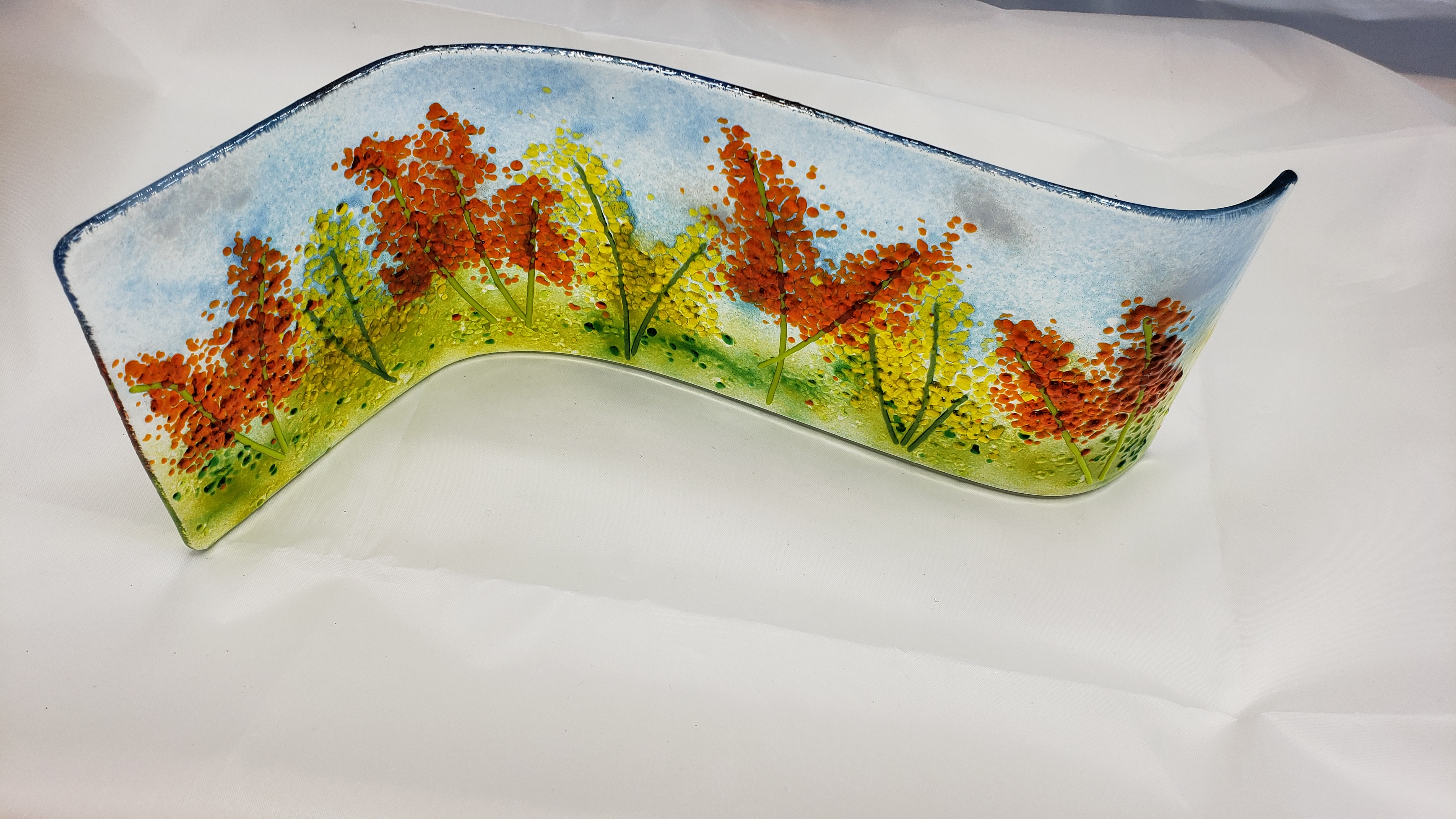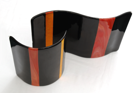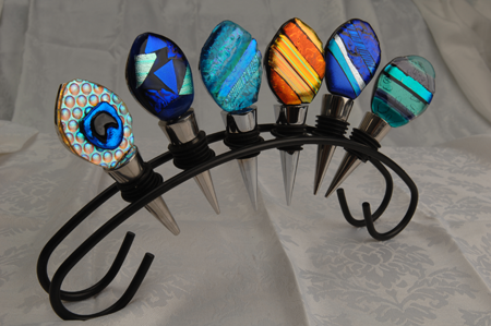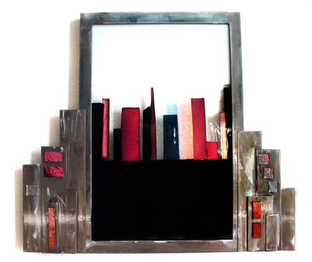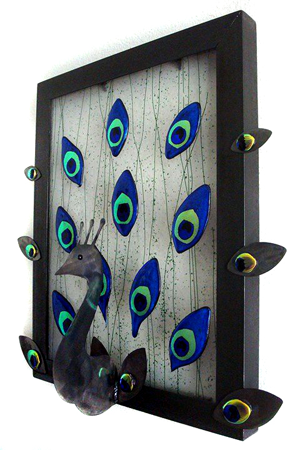 These pieces of art glass are unique. Metal & glass art were made with Molly Brown, metal artist.