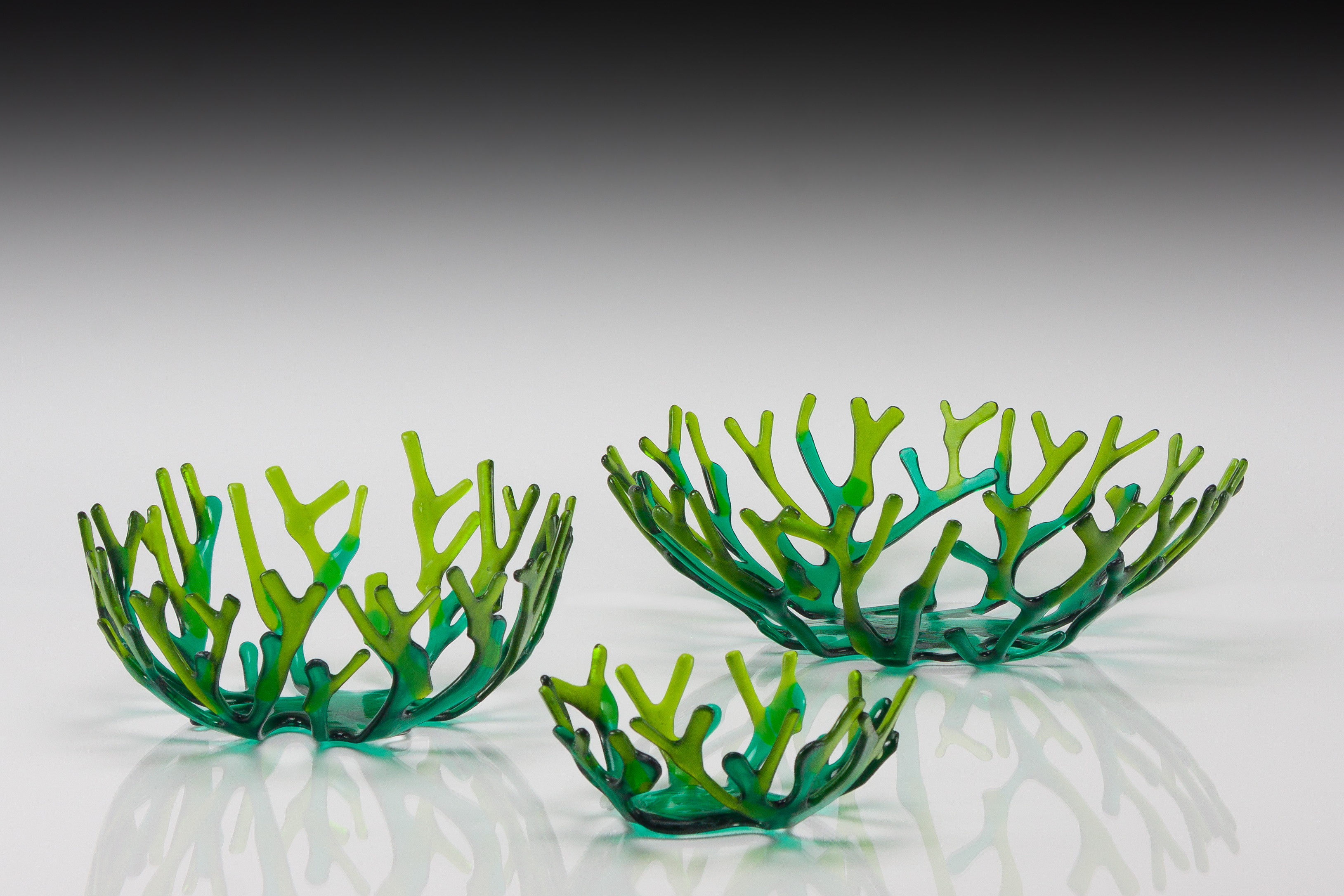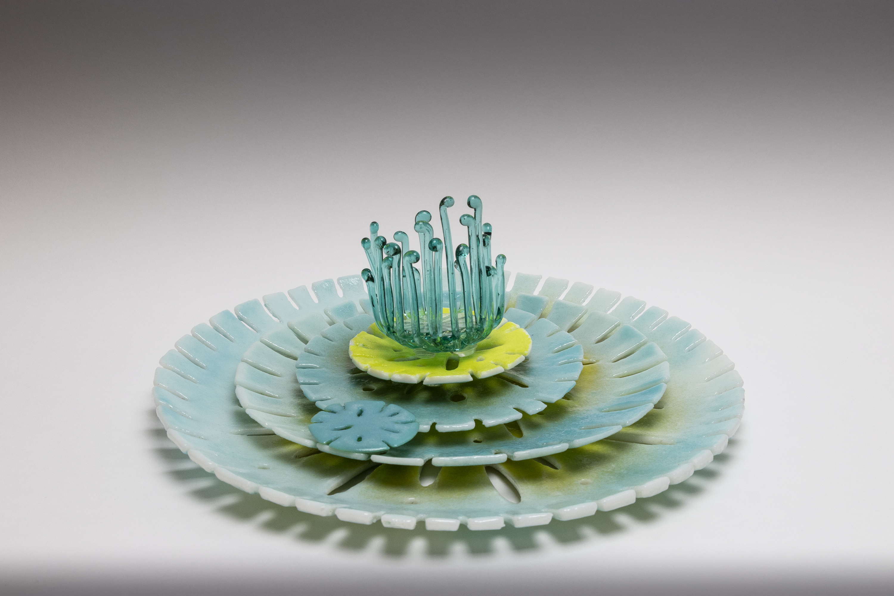 Turquoise/lime Coralite Set 14" diameter X 5" deep Best of Glass Division, CA State Fair 2022