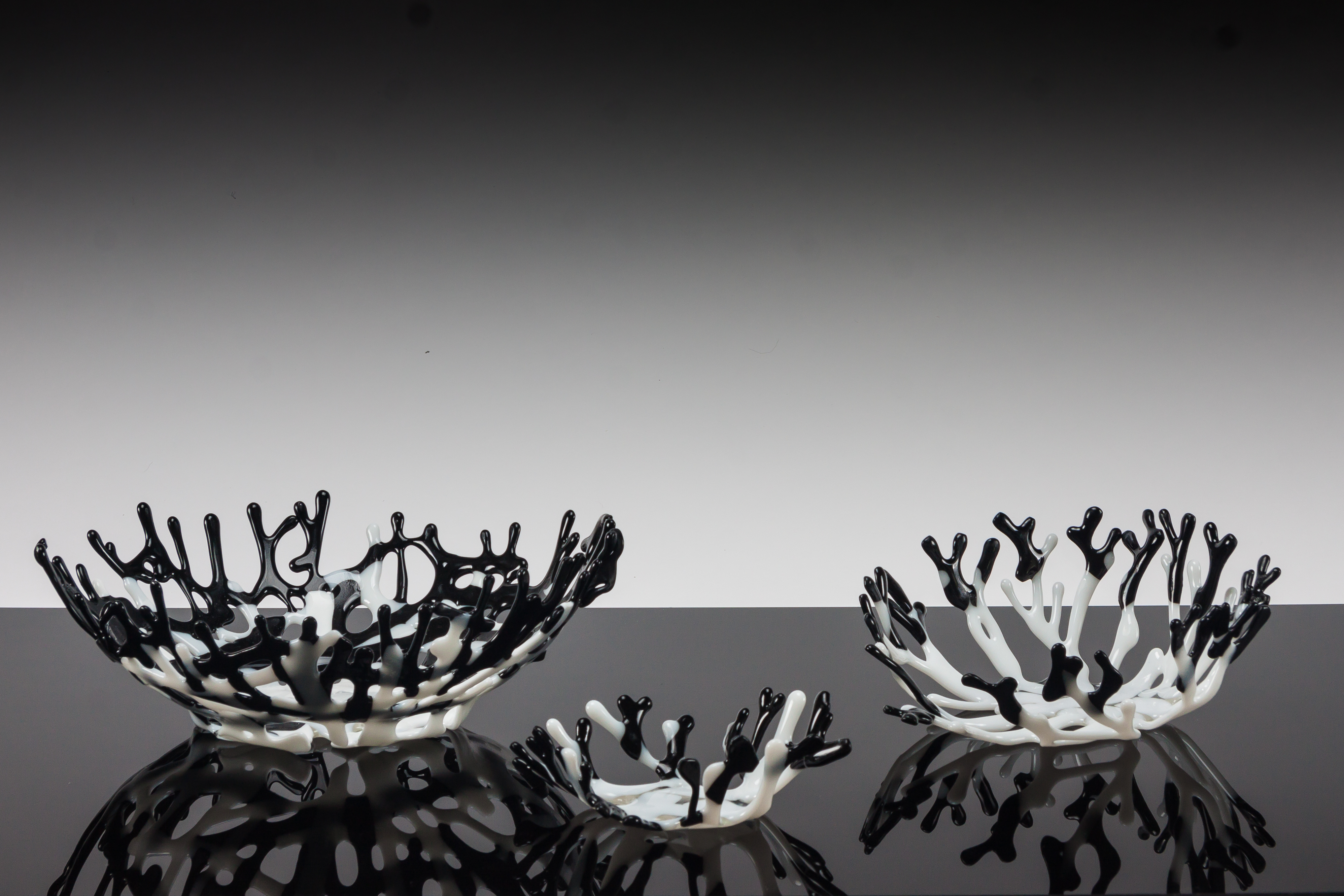 Black and White Coral Bowl Set 14" diameter X 5" deep