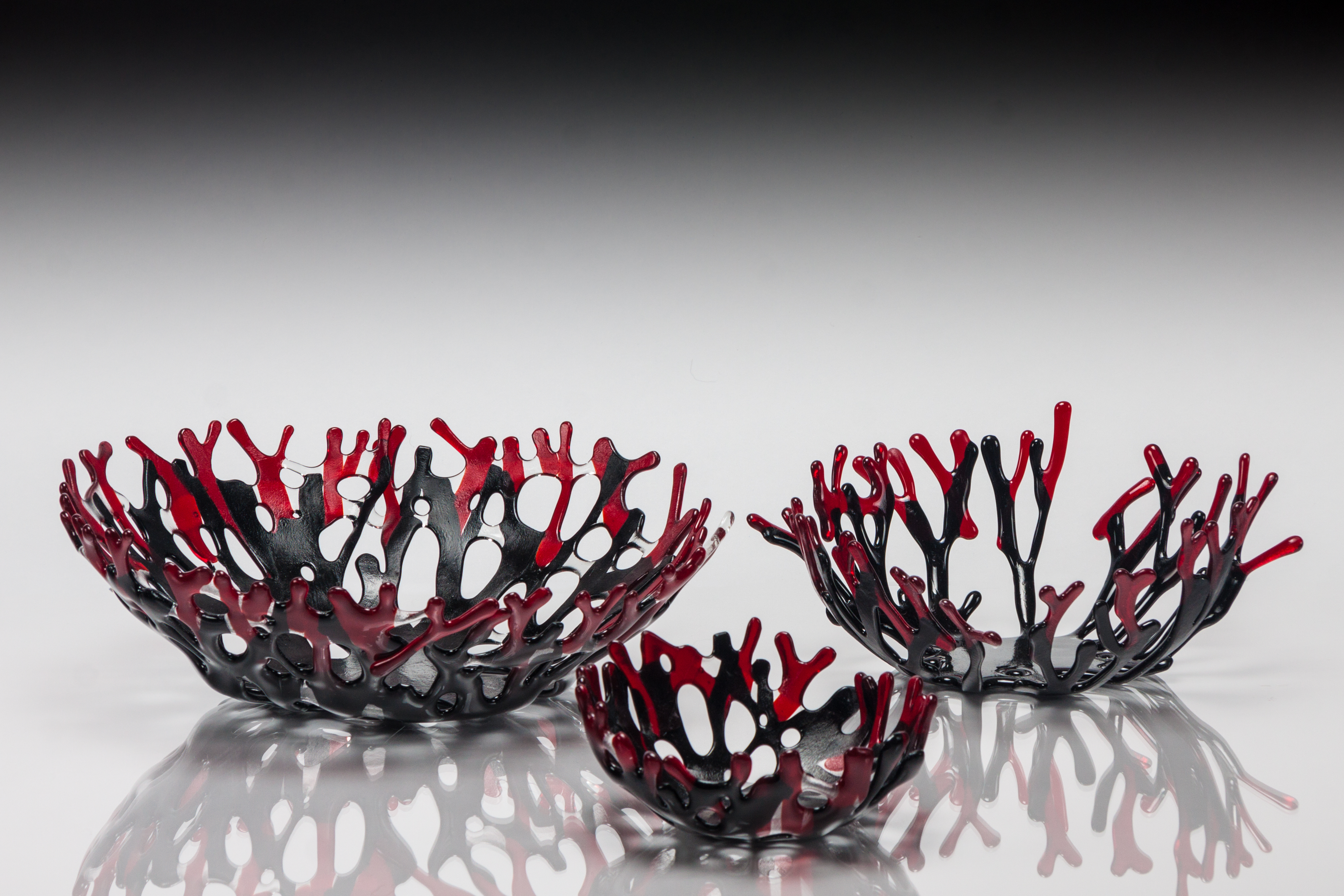 Red and Black Coral Bowl Set 14" diameter X 3.5" deep