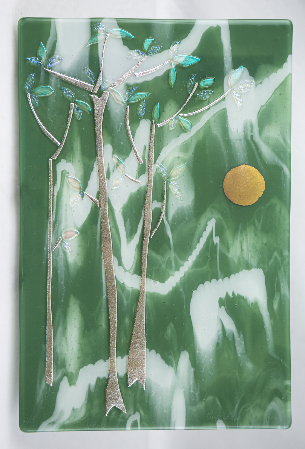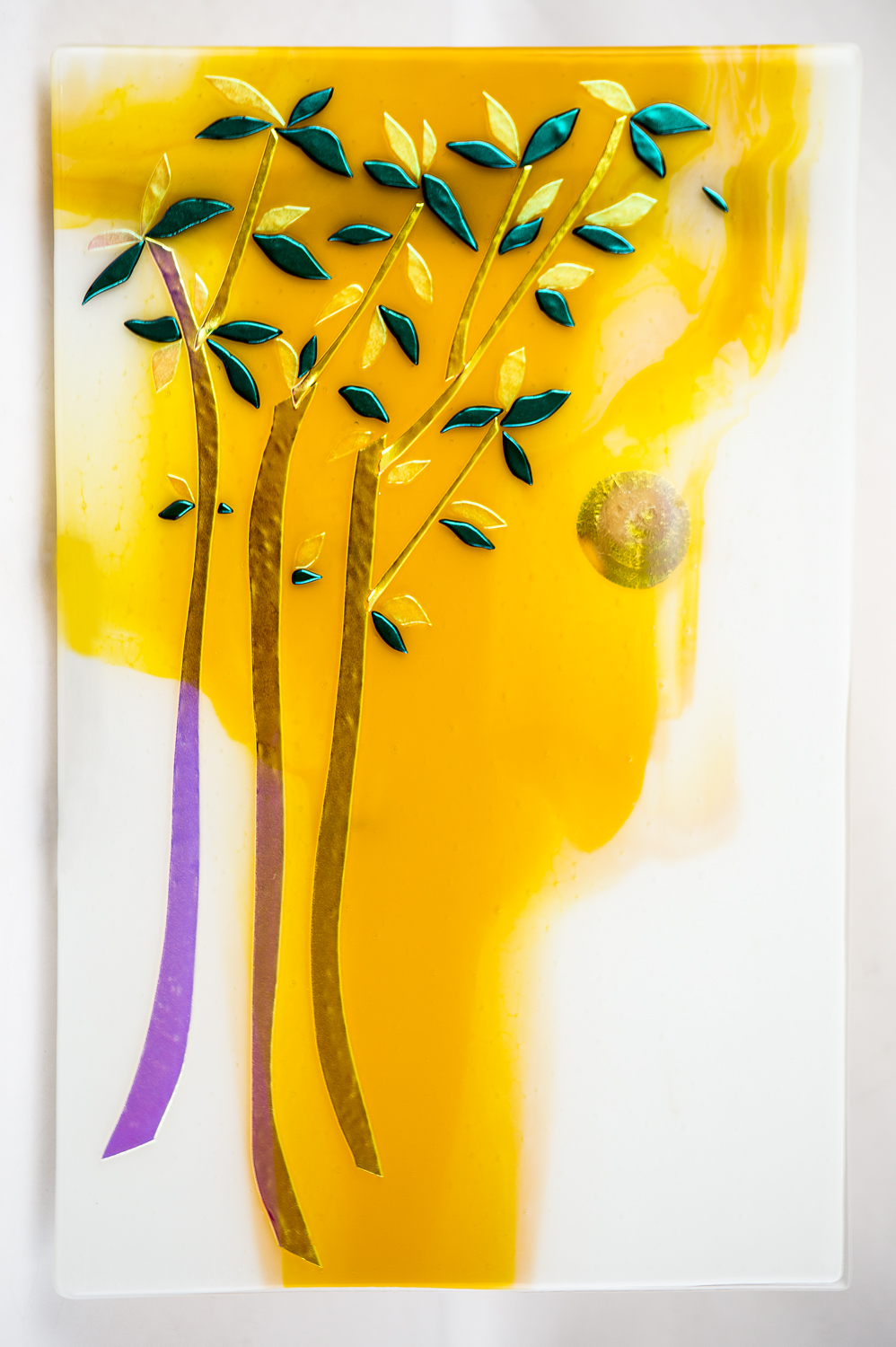 These large pieces of glass are made to hang on a wall in your home or office. You may select any piece to see it larger.